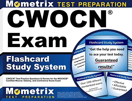 ***Ace Your Exam and Get the Results You Deserve***Taking the WOCNCB® Certified Wound, Ostomy, and Continence Nurse Exam is a challenge and your results can make a huge difference when it comes to your future. If you do well on the exam, it can open doors and lead to wonderful opportunities. If you do poorly on the exam, you will find yourself with fewer options. You may have to put your plans for the future on hold, or even give up on them altogether. Preparing for your exam with our CWOCN® Exam Flashcard Study System can help you avoid this fate and give you a big advantage when you take the test. Thousands of satisfied customers have relied on Mometrix Flashcards to help them pass their exams, and now you can too.CWOCN® is a registered trademark of the Wound Ostomy Continence Nursing Certification Board. Mometrix Test Preparation is not affiliated with or endorsed by the Wound Ostomy Continence Nursing Certification Board.When you study with Mometrix CWOCN flashcards, you'll get an in-depth review of each test section.Test sections include:Assessment Principles - WoundsManagement Principles - WoundsPressure UlcersLower Extremity UlcersOther Types of WoundsAssessment Principles - OstomyManagement Principles - OstomyFecal and Urinary DiversionsContinent DiversionsFistulas and Percutaneous Tubes and DrainsAssessment Principles - ContinenceManagement Principles - Urinary Incontinence...and much more!We believe in delivering lots of value for your money, so our flashcard system is packed with the critical information you'll need to master in order to ace your CWOCN exam. Our flashcards enable you to study small, digestible bits of information that are easy to learn and give you exposure to the different question types and concepts. With Mometrix flashcards, you'll be able to study anywhere, whenever you have a few free minutes of time.Study after study has shown that spaced repetition is the most effective form of learning, and nothing beats flashcards when it comes to making repetitive learning fun and fast. Using Mometrix flashcards for your CWOCN review incorporates repetitive methods of study to teach you how to break apart and quickly solve difficult test questions.You also get online access to CWOCN practice test questions, created by our Mometrix test prep team, to prepare you for what to expect on the actual exam. Each answer is explained in depth, in order to make the principles and reasoning behind it crystal clear.Mometrix Test Preparation has helped thousands of people achieve their education goals. Our CWOCN Exam Flashcard Study System can help you get the results you deserve on your CWOCN test too.